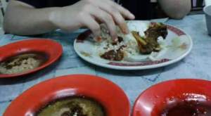 Setelah muter-muter di jalanan yang makin ke dalem makin sempit dan mengandalkan feeling, sampelah kita ke warung ayam. Aku pesen paha, dan si partner pesen dada. Dia ga mirip orang makan, lebih mirip ke orang habis maraton. Kringetnya yang sejagung, nggelontor gitu aja di jidatnya :D. Diakhir-akhir makanku ga habis karna uda kenyang dan:
