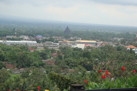 Kelar di Prambanan, kita nungguin mobil jemputan ke Ratu Boko. Jalanan dari Prambanan ke Ratu Boko menanjak dan lumayanlah jaraknya. Ternyata di sekitar daerah situ emang banyak candi kecilnya dan dari pusat informasi Ratu Boko viewnya keren banget.