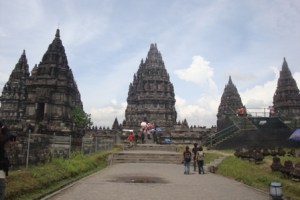 Sampe di sana uda jam 10. Aku, Mbak Din dan Chocky langsung ke loket buat beli tiket, Anggri uda masuk duluan. Ternyata ada yang paket Prambanan dan Ratu Boko, ntar dianter jemput ke Ratu Bokonya karna emang jalannya susah kalo pake kendaraan umum. Tiket Prambanan doang Rp 20.000,- kalo mau sama paket Ratu Boko tinggal nambah Rp 10.000,-. Nah pas mau antri, tiba-tiba ada bapak-bapak yang nyamperin kita trus bilang “tamunya dari mana mbak?”, sama ngeliatin si Chocky. Awalnya kita bengong, trus langsung ketawa-ketawa “dia Jogja asli pak”. Hahahha, seperti biasa, Chocky dipikir turis.