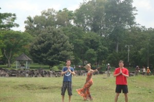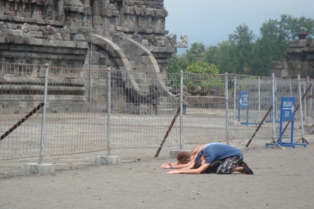 Di sana kita ketemu sekelompok bule geje. Keknya mreka sujud ke setiap candi yang ada di Prambanan ini. Liat aja ni fotonya ^^. Nah pas kita mo pulang, si bule ini melakukan ritual laen. Jadi penasaran, mreka sebenernya ngapain si, ato cuma wujud rasa girangnya karna uda bisa sampe ke sini. Entahlah, belum sempet tanya ke mreka heheh.