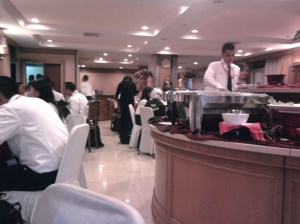 Rutinitas harian diawali dari jam 4.45 pagi (untuk hari senin, rabu dan jumat) dengan aerobik pagi. Pernah telat 1x dan sebagai hukuman disuruh senam di depan :lol:, itung-itung latian jadi instruktur kalo ntar butuh penghasilan sampingan hihihi. Jam 6.30 sudah musti turun ke resto untuk sarapan, jam 7.15 sudah ada di kelas. Sedangkan akhir jam kelas cukup variatif, mulai dari 16.30 sampai dengan jam 9 malem kurang dikit yang dikarenakan pematerinya ada meeting dan baru dateng jam 7 malem.