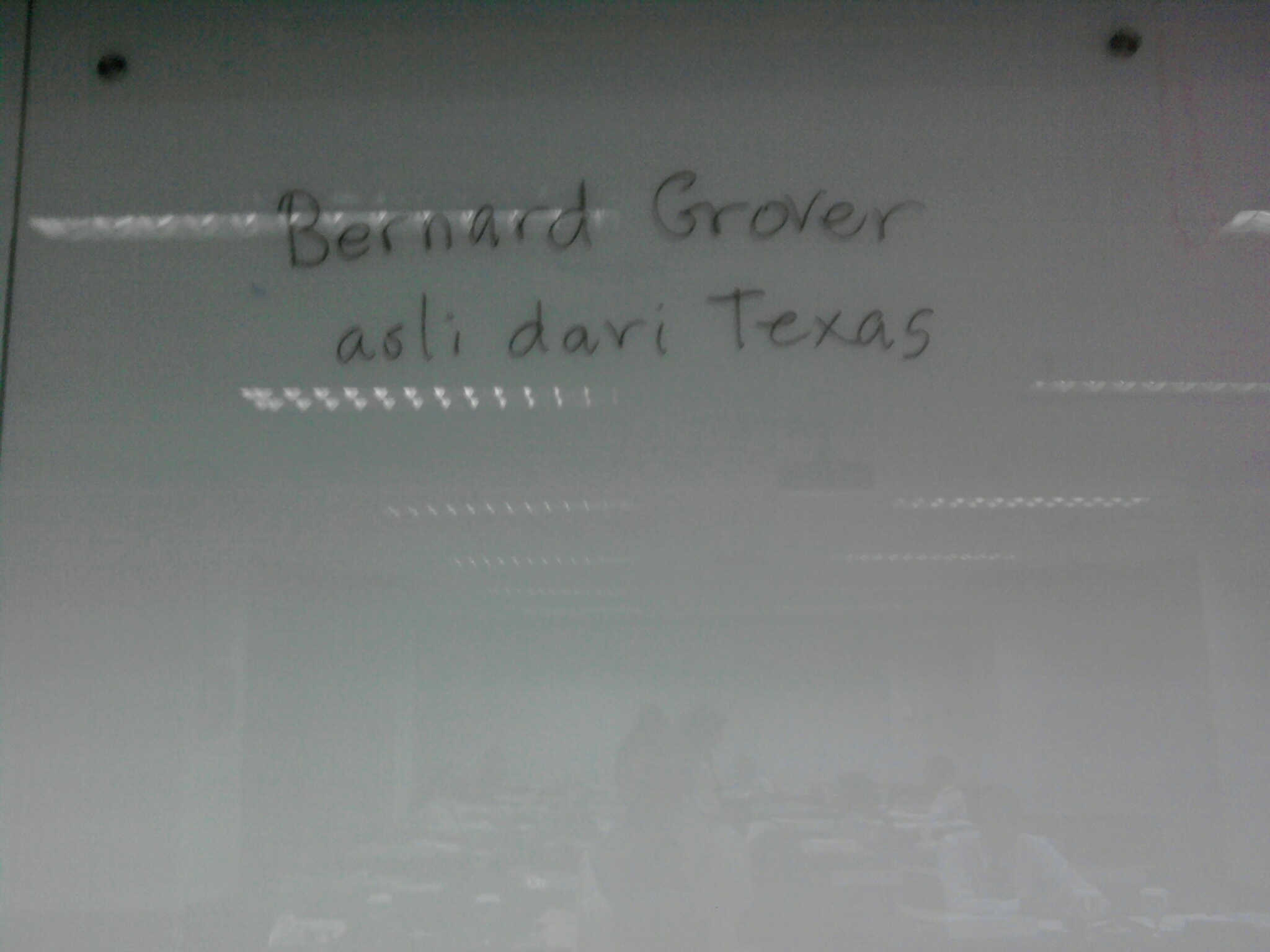 Mr Be, orangnya lucu banget, ekspresif. Dia bisa banyak bahasa, termasuk Indonesia, sedikit jawa, sedikit batak, sedikit sekali manado, dan lainnya ^^. Ini kesempatan belajar bahasa inggris gratis. Di EF aja untuk 18 pertemuan, tiap pertemuan 90 menit, aku harus membayar 1,5 juta. Lah ini, 8 jam setiap hari, untuk 20 kali pertemuan, silakan dihitung sendiri :lol:.
