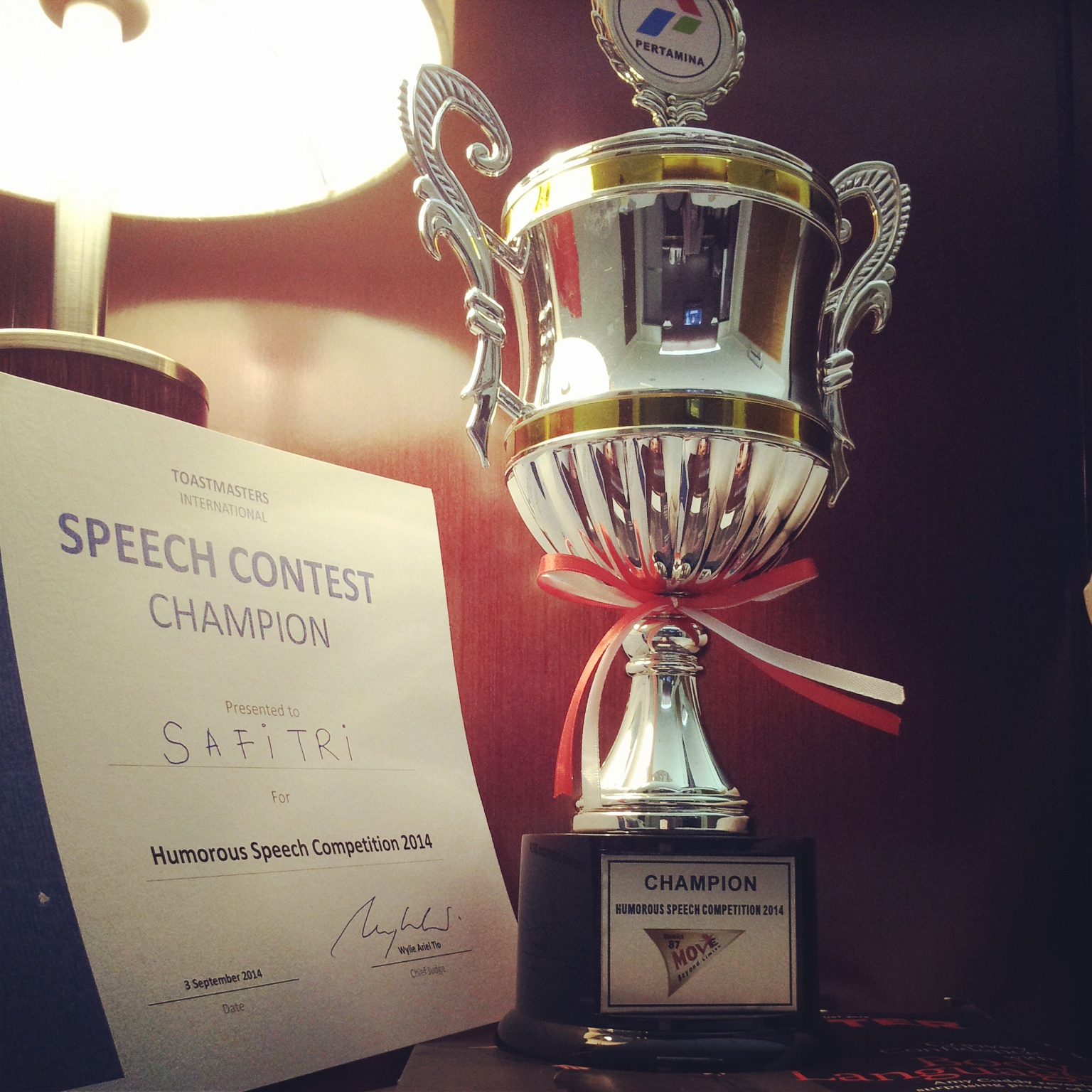 Last night I attended my 1st Pertamina Toastmaster Club Speech Contest and I took humorous category. Actually, I prepared a script before this one, but I wasn’t sure I can deliver it in funny ways. After got feedback too, I was so sure to find a new topic for my humorous speech. So, this is the speech I delivered and I won the 1st place. Actually, I did some improvisations on stage, because I forgot many things :D. Some lines are inspired by Toastmasters rules. So if you don’t get my jokes, you can come and join with us 🙂 Anyway, feedback is welcome 🙂 Hope can do much better for next competition.