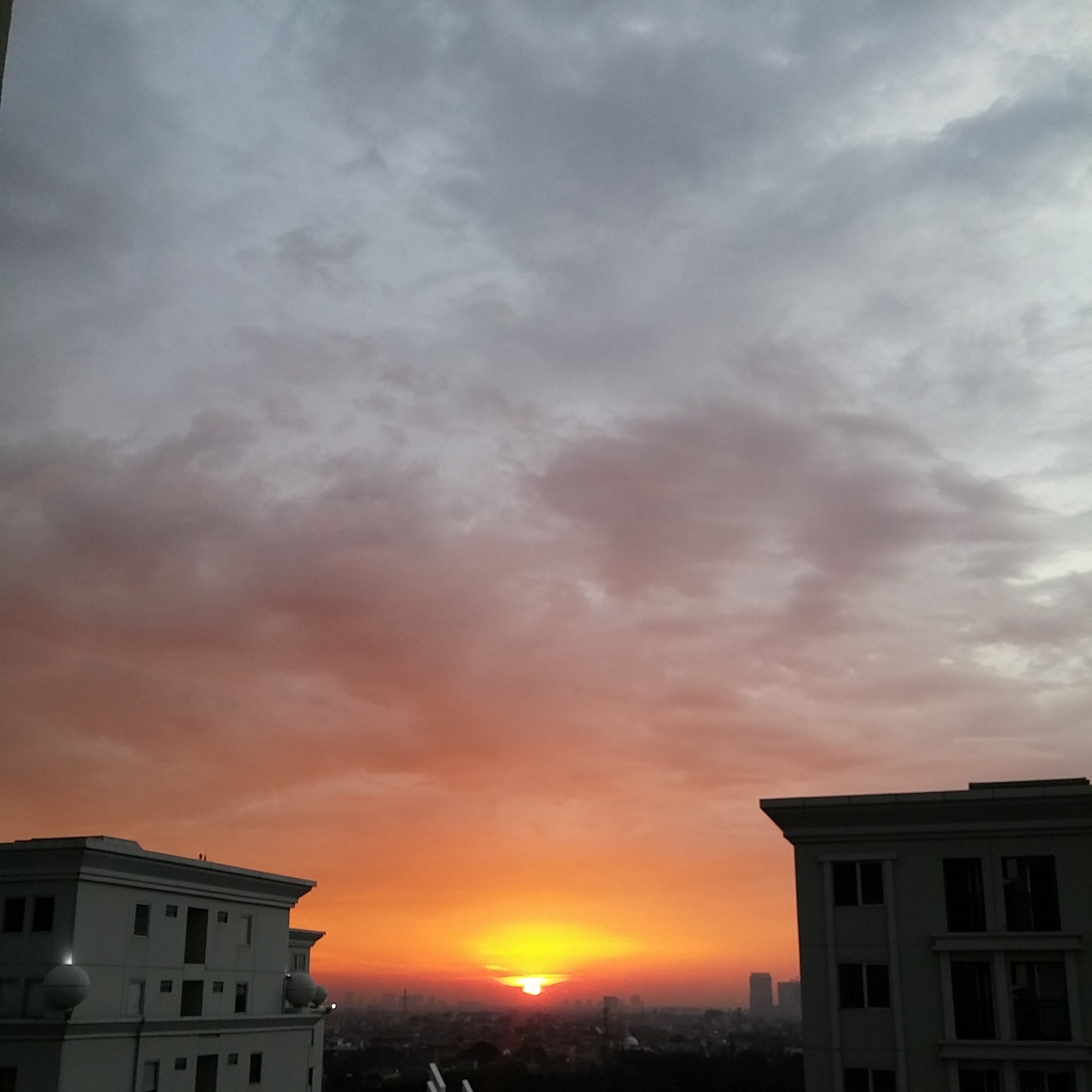 1. Pemandangan yang bagus terutama ketika sore hari menjelang matahari terbenam. Ini merupakan bonus yang diperoleh ketika tinggal di lantai atas dengan balkon menghadap barat. Kebetulan unit yang saya tinggali balkonnya menghadap ke danau TMP Kalibata, jadi bonusnya pemandangannya dobel ketika sunset.