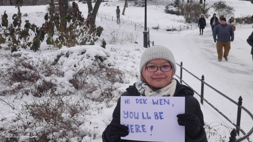 Sebelumnya, saya hanya tau gambaran kota New York dari film, liputan berita di tv, novel Architecture of Love-nya Ika Natassa, atau instagram @kartuposinsta. Di New York, pertama kalinya saya melihat salju, karena ketika di Milwaukee saljunya sudah menjadi es. Maap, norak 😦