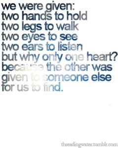 Sometimes it takes long time to meet what we want. But the only thing that we have to believe when we don’t find it, is God always gives what we need. Our life isn’t a fairytale, we won’t get what we want just by praying and soon after we open our eyes everything is served in front of us. Life won’t become interesting if every girl looks like snow white and every man turns as a prince with white horse.